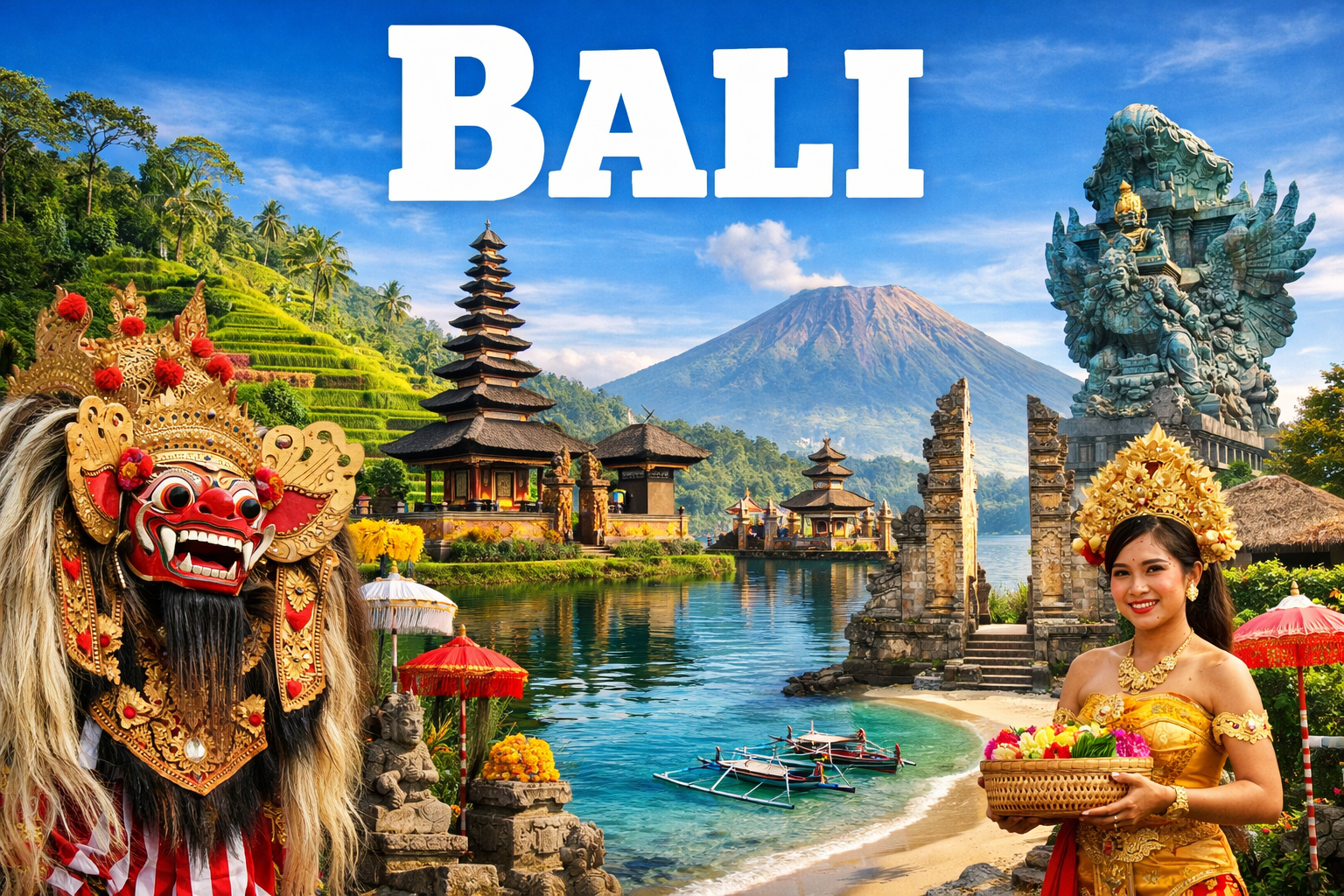 It has a mountainous tropical geography with terraced rice fields and world-famous beaches. The island has a population of just over 4 million, and its capital is Denpasar. More than 85% of the population practices Balinese Hinduism, making Bali unique in a mostly Muslim Indonesia.