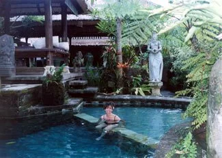 Glenna at our room-side pool in Ubud
