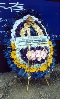 A wreath in memory to those who just died