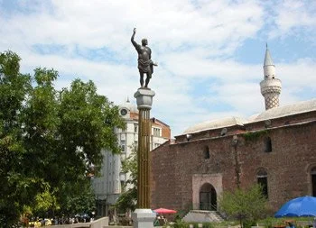 Dzhumaya Mosque and the statue of Philip II of Macedon (Alexander the Great’s father) - Plovdiv, Bulgaria.