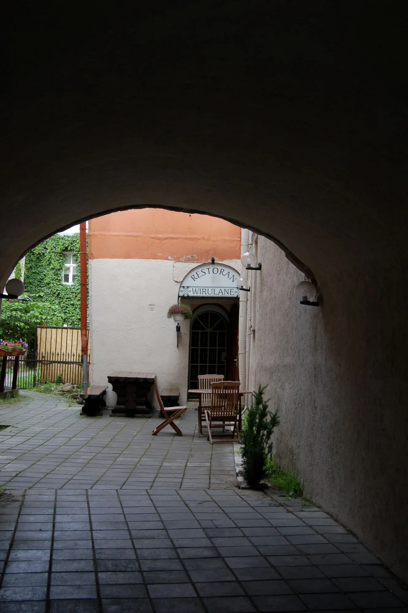 Stone archways leading to small courtyards and restaurants