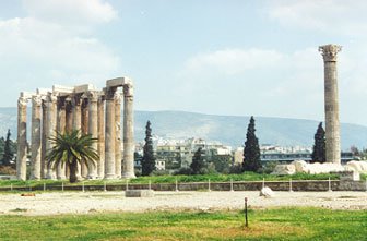 Temple of Olympian Zeus. Construction began in 174 BCE and was completed by the Roman Emperor Hadrian in 131 ACE