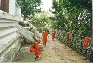 A few monks getting out of the hot sun