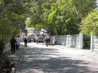 A quiet residential street on the densely populated island of Male