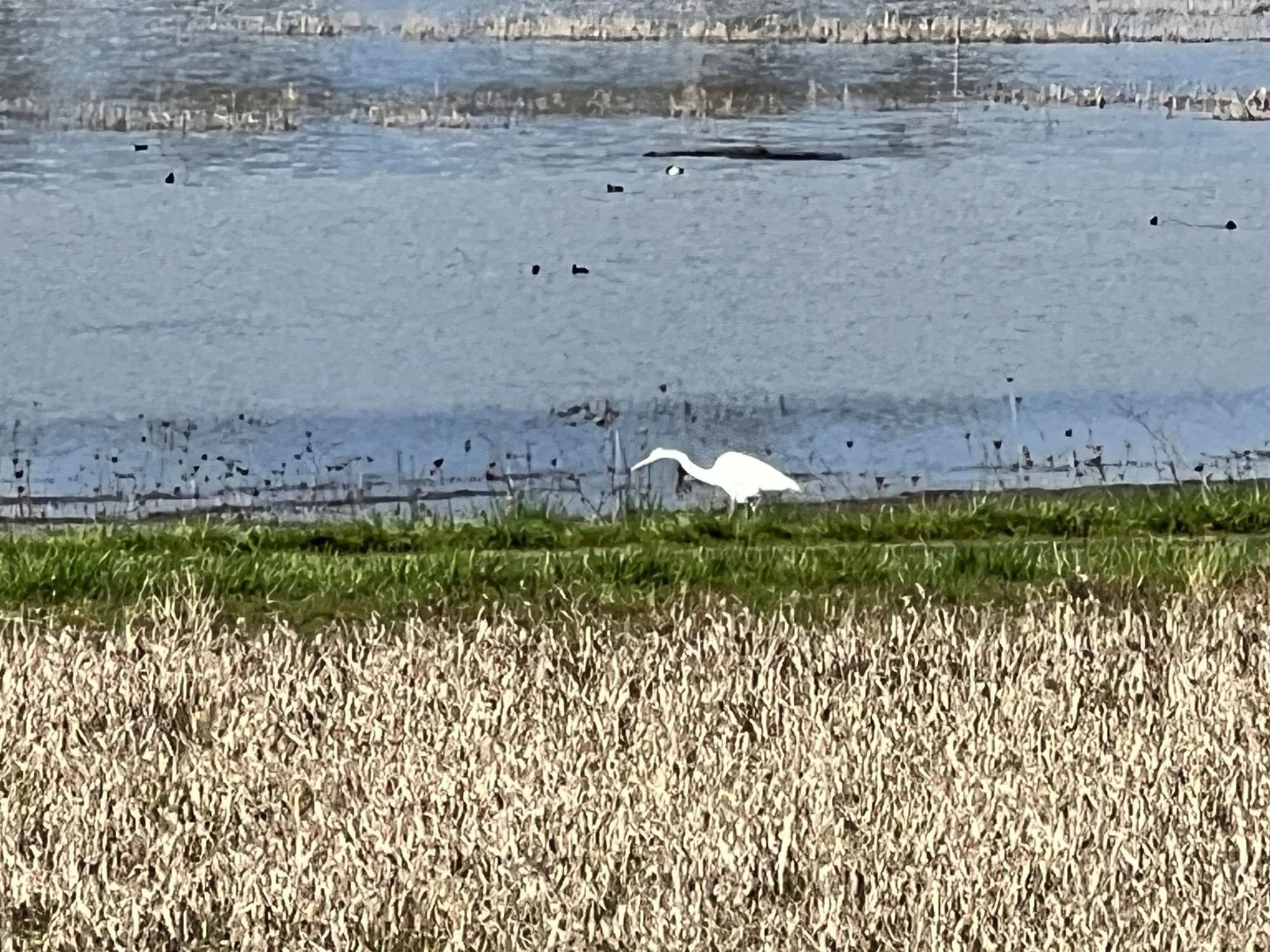 It is a big island with wetlands, farms, and a few homes.