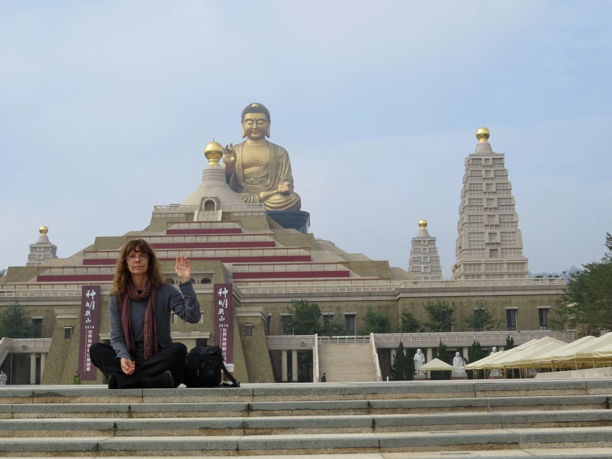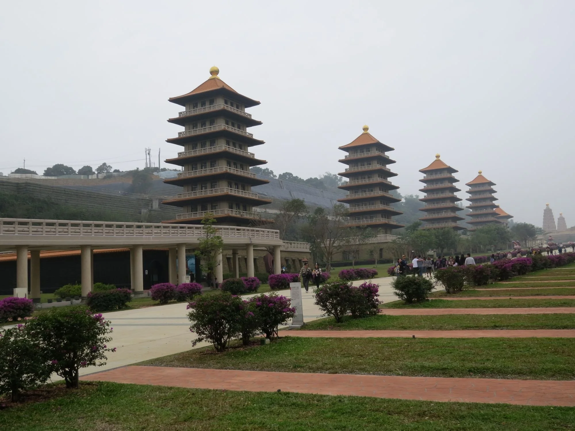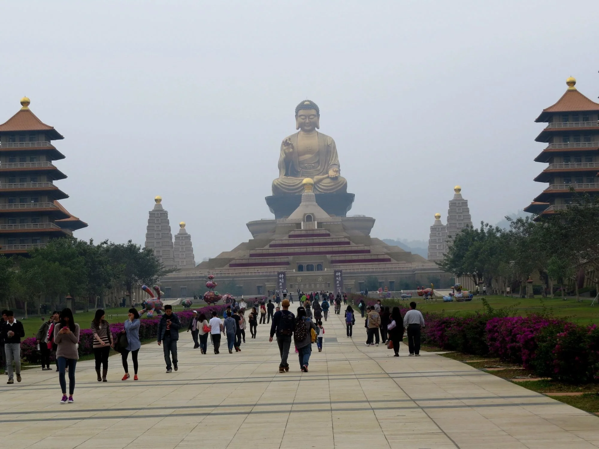 Fo Guang Shan Buddha Memorial Center, Kaohsiung. Bronze Buddha at 354 feet tall, lined by eight pagodas