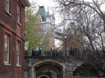 Looking at the Tower Bridge from the Tower of London